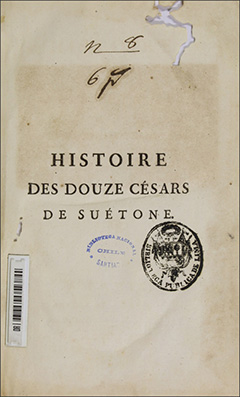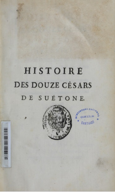 - Histoire des douze Césars. Tome premier(1771) Suetonio Tranquilo, Cayo; Ophellot de la Pauses, Henri, traductor; Delisle de Sales, Jean-Baptiste-Claude, 1739?-1816, traductorLa obra completa consta de 4 volúmenes. El presente corresponde al tomo primero.